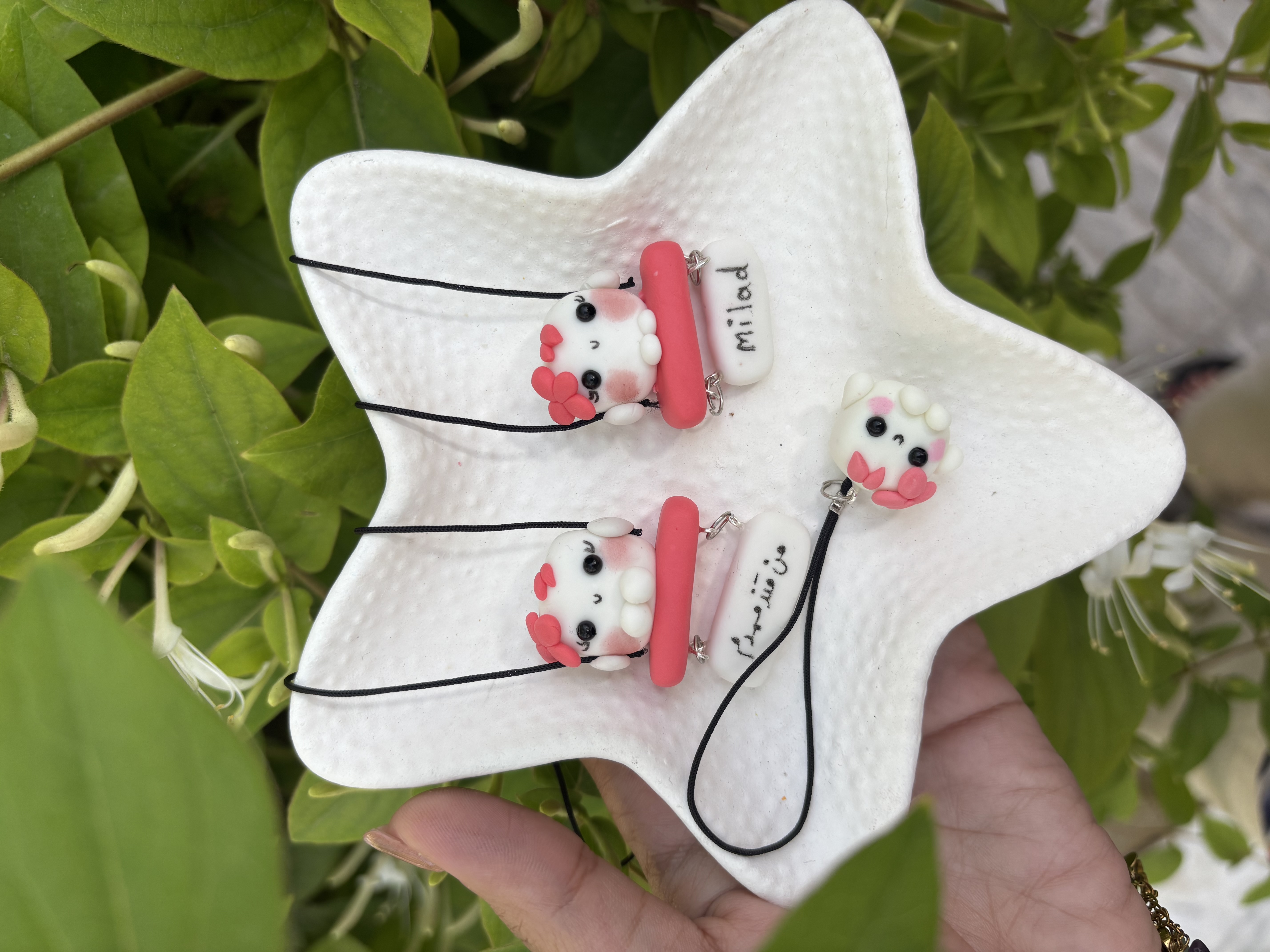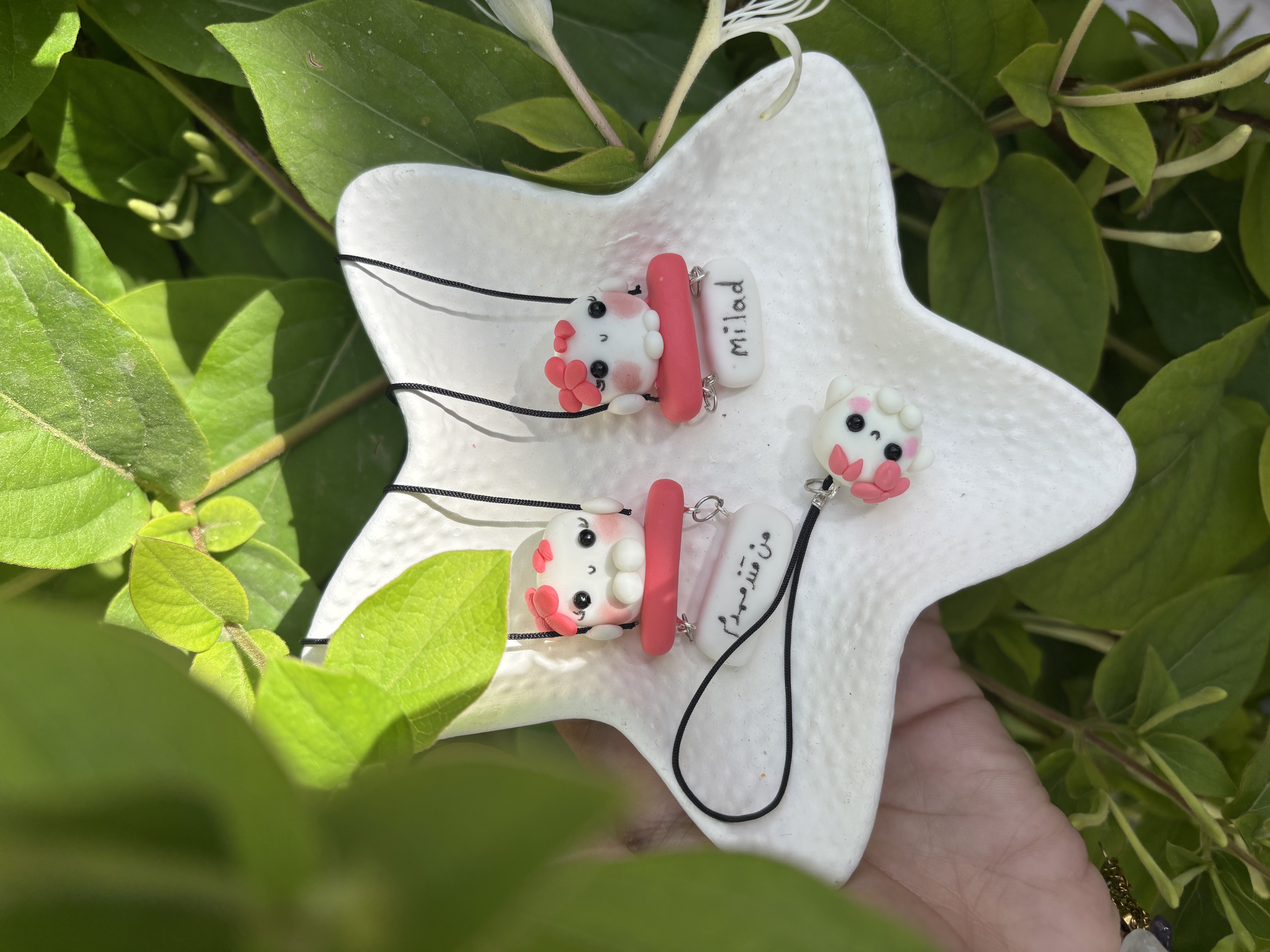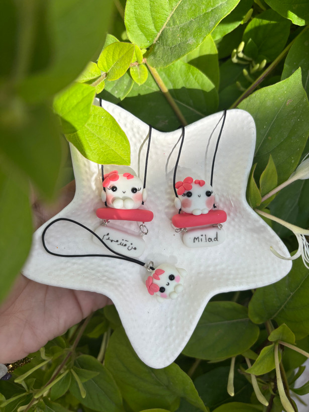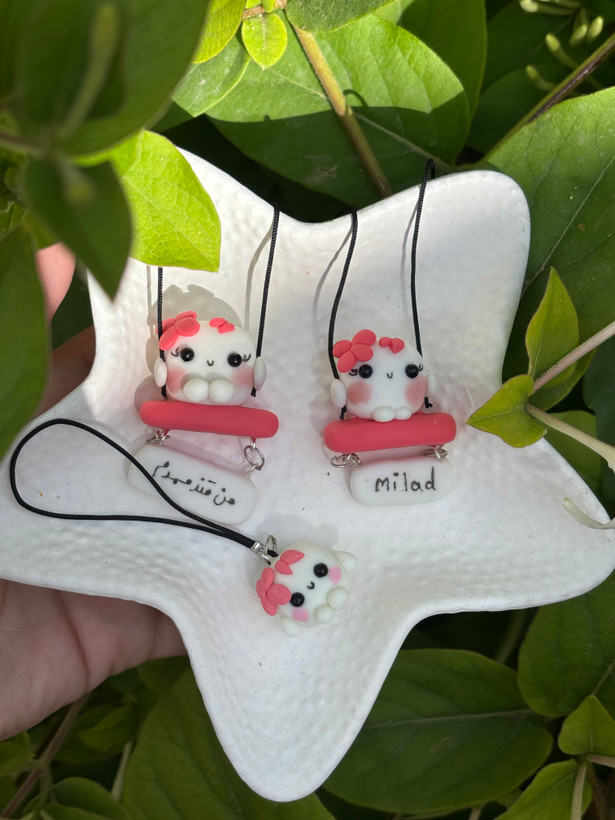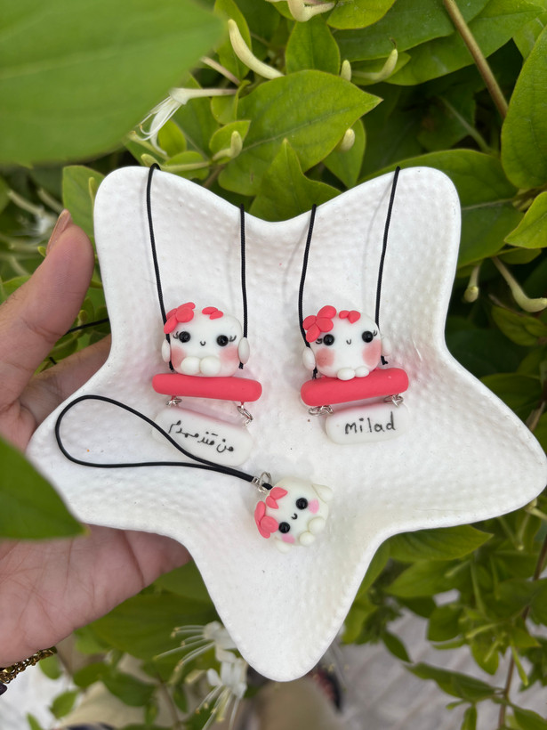 آویز جلو ماشین و آویز گوشی قندک صورتی